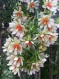 Species of Clade A always lack two key features of the stem present in most of the remaining "caulocacti": like most non-cacti, their stems begin to form bark early in the plant's life, and they also lack stomata – structures which control the admission of air into a plant and hence control photosynthesis. By contrast, species of Clade B typically delay forming bark and have stomata on their stems, thus giving the stem the potential to become a major organ for photosynthesis.[5][3] The subclades of Clade B, the Andean and SSA clades, also show consistent differences. The SSA clade is distinctly tree-like with pink flowers and leaves as well as spines on its areoles, which can grow out to form short, densely crowded branchlets or brachyblasts, which produce leaves. The Andean clade consists of climbers or undershrubs with smaller flowers and does not form brachyblasts.[3]