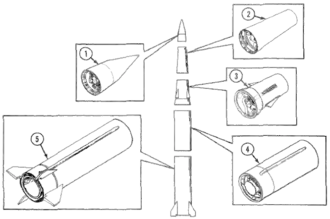 | Warhead section | 64.25 in (1.6 m) | 27.7 in (0.7 m) | 20 in (0.5 m) | 591 lb (268.1 kg) |