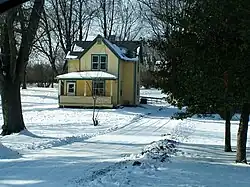 - Farm House - The house is a frame construction. It has two stories in a rectangle. The material was purchased from Sears & Roebuck through their catalogue, and is their No. 110 model (later marketed as the Silverdale).[3] Built between 1908 and 1910 it features intersecting gable roof with a front porch. The Lap siding is still original (2010). The foundation is concrete block.[2]