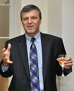 In the June 2009 election he was re-elected as the second of his party's MEPs.[8] His campaign slogan was "With Courage and Determination for a Strong Slovakia" (Slovak: S odvahou a nasadením pre silné Slovensko). He was MEP until 2014.[7]
