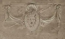 The decoration is marked by a subtle evolution in art and not by an absolute victory for modernity; while certain old habits remain, such as the shell or trophies of Love, they rub shoulders with new forms, in the sculpture or woodwork, whose motifs are directly inspired by the gardens of Trianon, such as the garlands of leaves or the profusion of fruit.[64]