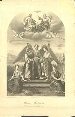 During his time there, he painted portraits, allegories and decorations for several churches.[2] His work at the Antim Monastery attracted the attention of Dionisie Romano, the Bishop of Buzău, who commissioned him to paint portraits of himself and numerous other bishops.[1]
