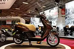 The Peugeot Kisbee is a scooter model produced by Peugeot Motocycles. Alternatively, it is available as an RS model, which is technically the same, only optically upgraded and painted in different colors.[1]