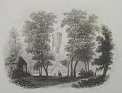The Prince's Tower, d'Auvergne's gothic residence, as depicted by Philip John Ouless in 1855