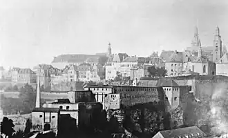 Luxembourg City's Photothèque in the Cloche d'Or district houses several large collections of photographs of the city taken between 1855 and today, comprising a total of some four million images. The first acquisitions (1985), considered the most important, consist of Bernard Wolff's collection with historic views taken by various photographers during the final period of Luxembourg's fortifications, Batty Fischer's collection of photographs documenting the city's development in the 19th and 20th centuries, and a precious series of originals taken by Edward Steichen.[14][15] All the archives in the Photothèque are freely accessible to the public on weekdays during office hours, and paper copies of the images are available.[16]