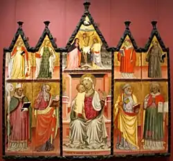 Another attributed work is a fresco of the Madonna in Glory with Four Saints for the bell-tower of the church of San Francesco; a Madonna with Angels for the Certosa of Bologna; and a Madonna and Child for the Foscarari chapel in the church of San Petronio.[2]