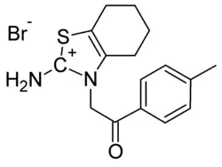 Pifithrin-α (chemical name 2-(2-Imino-4,5,6,7-tetrahydrobenzothiazol-3-yl)-1-p-tolylethanone hydrobromide[1]) is a chemical compound which acts as an inhibitor of the tumour-suppressing and epileptogenic protein p53.[2][3] It has a molecular weight of 367.30 and is soluble in DMSO up to 20 mg/mL. Its melting point is 192.1-192.5 °C.