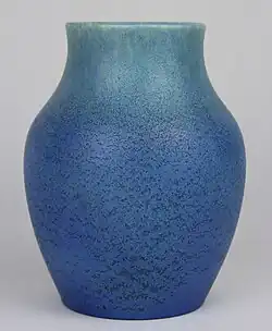 The First World War was a difficult time for all ceramic companies, and Forsyth, who had left to fight, only returned briefly after the war. Increasingly, the tile side of production dominated. "Lapis Ware", with special underglaze colours, was introduced in 1928. But production of pottery (as opposed to tiles) ceased in 1938.[2] A distinctive type of ware produced in the last years were glazed with a formula including uranium compounds, which gave a bright orange colour, but have the disadvantage of being slightly radioactive; "it has been suggested by experts that one should not store a large number of such pieces in a closed cabinet. Opening the door after a prolonged period could be equivalent to receiving an X-ray".[6]