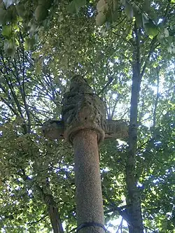 The Pillory of Bragança (Portuguese: Pelourinho de Bragança) is a 15th-century sculpted stone column with symbolic political, administrative and judicial significance, erected over a four-step octagonal platform, located in the civil parish of Sé, Santa Maria e Meixedo, municipality of Bragança. It consists of a cylindrical column erected over a square platform, sculpted with zoomorphic symbols, anthropomorphic scenes and the shield of the city of Bragança. Its structural design and sculptural ornamentation is characteristics of the era; the column is classified as a National Monument since 1910.[1]