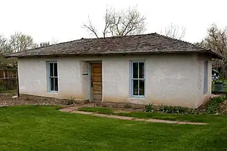 Pioneers began to settle in present-day Wheat Ridge in 1859.[2] James H. Baugh, who had come to Colorado Territory from the plains, chose to build a house with prairie grass and sod, based upon his experience.[2][a] The house was well-insulated against the cold winter and hot summer weather.[2] In the 1860s, Baugh and Jacob Brown created irrigation ditches for farming.[2]