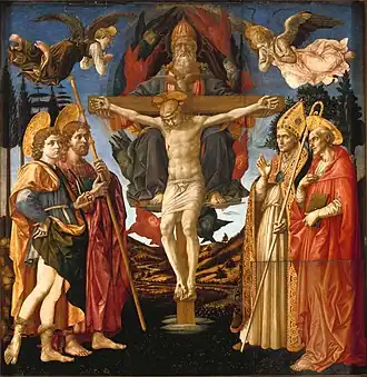 The Pistoia Santa Trinità Altarpiece is a 1455-1460 egg tempera, tempera grassa and oil on wood painting, begun by Pesellino and completed by Fra Filippo Lippi and his workshop.[1] The main panel of the work is today in the National Gallery in London.[2]