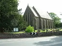 All Saints remains as one of two C of E churches in Malvern Wells following the closure of St Peter's Gothic style church designed by Robert Jearrad (1836).[6] Built in 1930 in 13th-century style in Malvern rag-stone by architect Troyte Griffith of Nevinson & Newton,[6] to whom Sir Edward Elgar dedicated an Enigma Variation,[7] it is located on steep sloping common land donated by Lady Emily Foley, it has a semicircular apsidal chancel which demonstrates the architectural challenges of east-facing chancels on the flanks of the Malvern Hills, and an organ by Nicholsons.