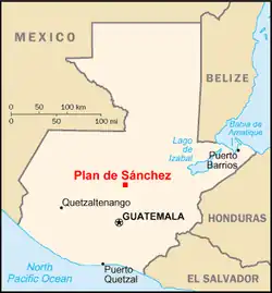 The Plan de Sánchez massacre took place in the Guatemalan village of Plan de Sánchez, Baja Verapaz department, on 18 July 1982. Over 250 people (mostly women and children, and almost exclusively ethnic Achi Maya) were abused and murdered by members of the armed forces and their paramilitary allies.