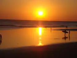 Playa Grande (Spanish pronunciation: [ˈplaʝa ˈɣɾande], lit. "Big Beach"), also known as Salinas, is a beach community on the Pacific coast of Costa Rica just north of Tamarindo.[1] It is located inside the canton of Santa Cruz in Guanacaste Province. Playa Grande has been part of the Parque Nacional Marino Las Baulas (Las Baulas Marine National Park) since 1990.[2] There are palm trees and vegetation around the beach, which stretches for about 4.5 kilometers (2.8 miles). It is part of the Las Baulas National Marine Park, which was established to protect the nesting grounds of endangered leatherback turtles. Playa Grande is one of the major nesting sites for these turtles, and visitors can witness the nesting and hatching process during the nesting season, which typically occurs from October to March. The main attraction of Playa Grande is its surf breaks. The beach has consistent waves.[3] Playa Grande is an ideal destination for nature lovers, with diverse ecosystems surrounding it. Beyond the beach, you can explore the nearby mangrove forests, take boat tours along the estuaries, or venture into the neighboring national parks, such as Rincon de la Vieja or Santa Rosa, which offer hiking trails, wildlife spotting opportunities, and breathtaking landscapes.[4]