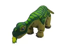 PLEO is an animatronic pet dinosaur toy manufactured by Innvo Labs, a company located in both Hong Kong and Nevada.[1] The toy has the appearance and (imagined) behavior of a week-old baby Camarasaurus dinosaur. It was designed by Caleb Chung, the co-creator of the Furby, Chung's company Ugobe first sold Pleo and was manufactured by Jetta Company Limited.[2] The species of dinosaur chosen allows for concealing the sensors and motors needed for the animation, since it has a big body shape and relatively large head. According to their website, each Pleo would "learn" from its experiences and environment through artificial intelligence and develop an individual personality.