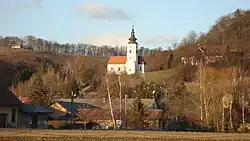 The local parish church is built on a small hill above the settlement and is dedicated to Saint Leonard. It belongs to the Roman Catholic Archdiocese of Maribor. It was built in 1519 and was vaulted in the late 18th century.[4]