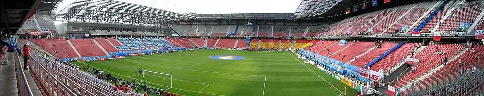 Panoramic view of the Wörthersee Stadion in Klagenfurt before Poland's match against Germany. Poland also played against Croatia at this stadium. The match against Austria took place at the Ernst-Happel-Stadion in Vienna