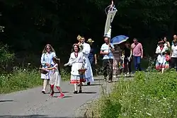 History of Poles in Bosnia begins during the Ottoman rule, but a significant influx only took place following the Austro-Hungarian occupation of Bosnia and Herzegovina in 1878.[1] The occupying authorities wished to colonize the country with politically reliable people, whom they rewarded with land and benefits.[2] Germans and Hungarians were not considered suitable, while Croatians and Serbians were not desirable. The authorities decided on Poles and Czechs, expecting their Slavic roots to help them acclimatize well among Bosniaks.[1] Official settlement lasted from 1896 until 1906.[3] The Polish settlers were predominantly ethnic Roman Catholic farmers from the Kingdom of Galicia and Lodomeria, a crown land of Austria. Along with them came the Eastern Orthodox Ruthenians. Civil servants, physicians, engineers and lawyers,[2] all driven by expectations of fast career advancement and higher wages,[1] were also among Polish settlers.[2] The farmers were settled in the flatlands of Bosanska Krajina and Posavina, mostly in the vicinity of Prnjavor, Derventa, Bosanska Gradiška, Banja Luka, Bosanski Novi and Prijedor. In the areas surrounding Prnjavor and Bosanska Gradiška, there existed villages inhabited solely by Poles; Poles otherwise lived in villages with Bosnian Serbs or, less commonly, in villages with Bosnian Croat majority.[2] The two largest Polish colonies in Bosnia and Herzegovina, Rakovac (Polish: Rakowiec) and Novi Martinac (Nowy Martyniec) near Prnjavor, were formed between 1899 and 1901.[3]