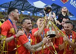 After 10 Polish Championship titles a representative Golden Star is placed above the team's badge to indicate 10 Polish Championship titles.