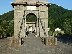 The Ponte delle Catene or Bridge of Chains is a 19th-century suspension bridge in Bagni di Lucca, Tuscany. The Bridge spans the river Lima, a branch of the Serchio, and links Fornoli and Chifenti.