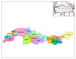 The Black Sea Region (Turkish: Karadeniz Bölgesi), comprising all or parts of 22 provinces, is one of Turkey's seven census-defined geographical regions. It encompasses but is larger than historic Pontus.