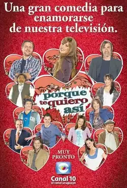 Porque te quiero así (Spanish: Because I Love You That Way) is a Uruguayan telenovela produced and aired on Channel 10 from 2010 to 2011.[1] Starring Jorge Echagüe and Florencia Peña in the first season, and Echagüe alongside Catherine Fulop in the second, the series follows a group of people whose lives intertwine around a neighborhood sports club, witnessing Susana’s return to the country after many years and her reunion with a former love.[2]