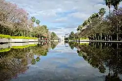 Porto Alegre has a long coastline on the Guaíba Lake, and its topography is punctuated by 40 hills. In the lake, a vast body of water, a maze of islands facing the city forms an archipelago where a unique ecosystem gives shelter to abundant wildlife. The city area concentrates 28% of the native flora of Rio Grande do Sul, with 9,288 species.[18] Among these, there are many trees which are vestiges of the Atlantic Forest. The fauna is also diversified, especially in the islands and hills. The Portoalegrense environs include many parks, squares and tree-lined streets.