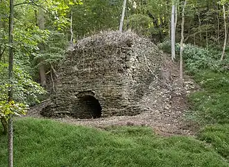 The remaining buildings from the mill occupy an 18-acre (7.3 ha) site and are mostly in ruins. The buildings include the main mill building, several lime kilns, a headrace wall, and an office building. The stone foundation of the mill's dam, which extends across the river into Washington County, Maryland, is also still part of the site.[2] The mill site was added to the National Register of Historic Places on February 5, 2014.[1]