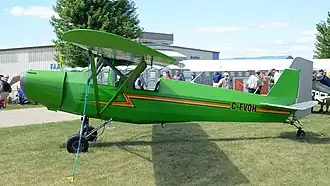 The Acey Deucy is a two-seat parasol-wing monoplane with vee-bracing struts on each side supporting the composite structure fabric-covered wing. The fabric-covered fuselage and tail unit are a welded steel-tube structure with wire-bracing on the tail unit. The Acey Deucy can be powered by a sole piston engine rated between 65 and 90 hp, the prototype had a 65 hp (48 kW) Continental A65 air-cooled engine driving a metal two-bladed fixed-pitch propeller. The conventional landing gear has a tailskid and the fuselage has two open cockpits in tandem, the front cockpit has a small door on the starboard side.[2]