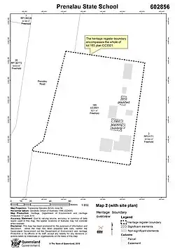 - ^ a b c d e f g h i j k l m n o p q r s t u v w x y z aa ab ac ad ae af ag ah ai aj ak al am an ao "Prenzlau State School (entry 602856)". Queensland Heritage Register. Queensland Heritage Council. Retrieved 11 February 2018.