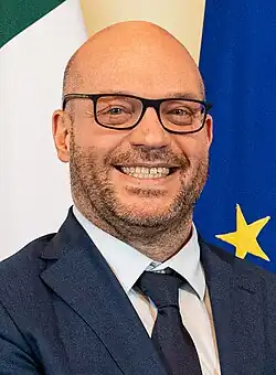 The president of the Chamber of Deputies (Italian: presidente della Camera dei deputati) is the speaker of the lower house of the Italian Parliament, the Chamber of Deputies. It is the third highest-ranking office of the Italian Republic, after the president of the Republic and the president of the Senate. Since 14 October 2022, the role has been held by Lorenzo Fontana.