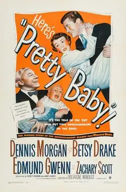 Pretty Baby is a 1950 American comedy film starring Dennis Morgan, Betsy Drake, Zachary Scott and Edmund Gwenn. A young woman's little white lie leads to unforeseen complications. Cary Grant aggressively promoted Drake, his wife, to Jack L. Warner for the lead in Pretty Baby.[2]