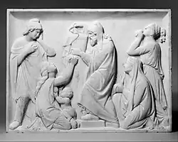 A popular folk etymology derives the name from the Greek verb priamai, meaning 'to buy'. This in turn gives rise to a story of Priam's sister Hesione ransoming his freedom with a veil, from Heracles, thereby 'buying' him.[6] This story is attested in the Bibliotheca and in other influential mythographical works dated to the first and second centuries AD.[7] These sources are, however, dated much later than the first attestations of the name Priamos or Pariya-muwas, and thus are more problematic.