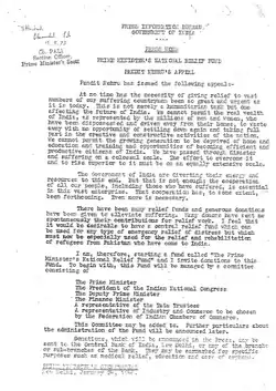 Appeal by the then Prime Minister, Pt. Jawaharlal Nehru in January 1948 to help people displaced from the partition of India. The Prime Minister’s National Relief Fund (PMNRF) was established with public contributions post this appeal