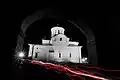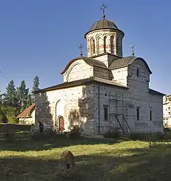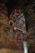 The Princely Church of Saint Nicholas in Curtea de Argeș was founded by Basarab I (1310 - 1352), completed in 1352, in the perimeter of the 13th century voievodal court. The church, a complex inscribed Greek cross monument, is one of the most representative monuments of medieval Romanian architecture, being the oldest voivode funded religious monument in Wallachia.[1] The interior murals are from 1364 - 1369. The church is included on the new list of Romanian historical monuments: AG-II-m-A-13647.01 and in the UNESCO Indicative List.