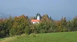 The local church is dedicated to Saint Lambert and belongs to the Parish of Stična. It was built in 1497 on the site of a medieval castle where Viridis Visconti, the wife of Leopold III, Duke of Austria, lived after her husband's death in 1386 until her own death in 1414.[5]