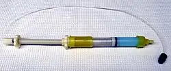 Nickel-affinity column. The resin is blue since it has bound nickel.