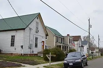 The Pulaski South Historic Residential and Industrial District encompasses an area of residential and industrial development on the south side of Pulaski, Virginia. Located south of Commerce Street, the town's early commercial district, is an area that was developed between about 1880 and 1940 to support the growth of the Bertha Zinc and Mineral Company, a major local employer of the period whose industrial complex lies just west of the district. The district includes tracts of modest worker housing, including brick rowhouses, and vernacular one and two-family frame houses. There are two churches, one a fine brick Gothic church for a Pentecostal congregation, the other an Episcopal church since converted into housing.[3]