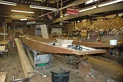 Punts are still made in England to supply the tourist trade in Oxford and Cambridge or for racing purposes. The construction material of choice for most punts is wood. Fibreglass is used for some very light and narrow racing punts. The sides, the ends, known as "huffs", and the "till" are normally made of hardwood such as mahogany. The treads are often made from teak. The bottom is made of softwood and may be replaced several times during the life of a particular boat.