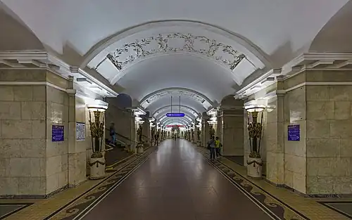 There is a monument in the station dedicated to the poet Alexander Pushkin sculpted by Mikhail Anikushin. This station was the first USSR metro station with memorial located under the ground.