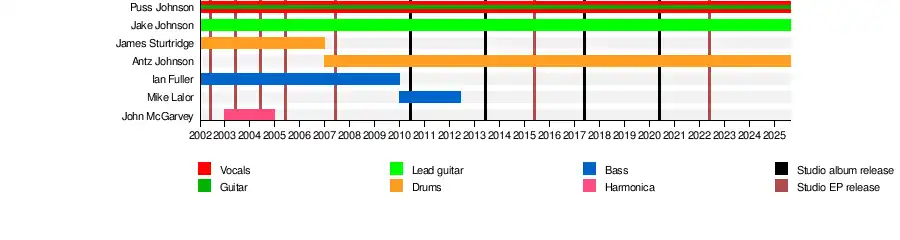 In November 2024, the band went on hiatus until 2026 to allow for arthritis treatment for both Jake and Antz.