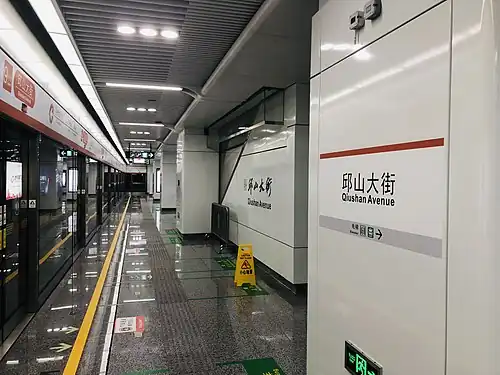 Qiushan Avenue (Chinese: 邱山大街) is a metro station of Line 9 of the Hangzhou Metro in China. It is located in Linping District of Hangzhou.[1] The station was opened on 17 September 2021.[2]