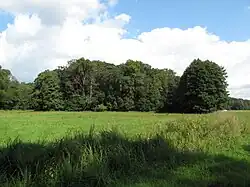 The Räuberberg is designated as a ground monument under the name Burg Deutsches Mittelalter. In the list of ground monuments, it is listed as number 90383 under "Görsdorf (B)".[6] As described in the Historisches Ortslexikon, it is approximately 2.2 kilometers west-southwest of the Angerdorf Görsdorf. This location is marked by the remains of the castle rampart of a noble castle and various discoveries dating from the 12th to 13th centuries, found on a hill to the north of Lake Drobsch.[7] While there were initial suppositions suggesting that it might have originated as a Slavic castle rampart or served as a Slavic princely seat, these conjectures have not been substantiated.[8][9][10]