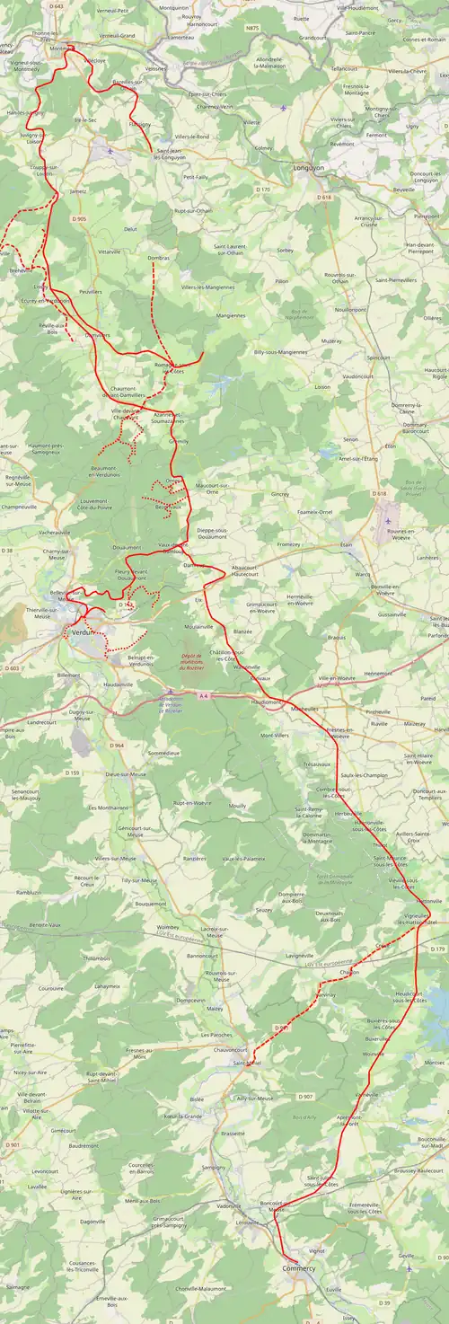 - ^ Approximate route Verdun–Vaux-devant-Damloup–Montmédy on Google Maps.