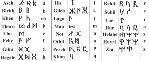 A runic alphabet recorded in a treatise called De Inventione Litterarum has been ascribed to Rabanus. It consisted of a mixture of Elder Futhark with Anglo-Saxon runes and is preserved in 8th and 9th-century manuscripts mainly from the southern part of the Carolingian Empire (Alemannia, Bavaria). The manuscript text attributes the runes to the Marcomanni, quos nos Nordmannos vocamus (and hence traditionally, the alphabet is called "Marcomannic runes") but it has no connection with the Marcomanni, and rather is an attempt of Carolingian scholars to represent all letters of the Latin alphabet with runic equivalents.