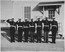 Spurred by executive orders in 1941 and 1948, the integration of non-white USMC personnel proceeded in stages from segregated battalions in 1942, to unified training in 1949, and finally full integration in 1960.[84]