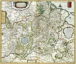 Magni Ducatus Lithuaniae,[a] or simply the Radziwiłł map, is a Latin map of the Grand Duchy of Lithuania created under the tutelage of Mikołaj Krzysztof "the Orphan" Radziwiłł. The map was likely first published in 1603 but no surviving copy is known. It was published in the Amsterdam printing house of Willem Blaeu as a wall map from 1613 to 1650s. It was also included in atlases published by Blaeu as a foldable insert in 1631–1649. In 1649, the map was redrawn to shrink it so it could fit on an atlas page. Valued for its accuracy and intricate detail, the map was modified and republished many times by various cartographers until the First partition of the Polish–Lithuanian Commonwealth in 1772.