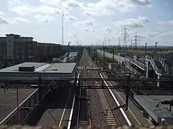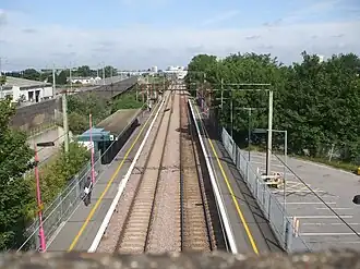 Rainham station (Essex) looking east - new footbridge and HS1 on right hand side