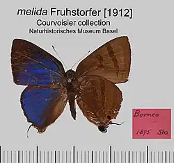 Rapala melida or Frustorfer's Flash, is a butterfly in the family Lycaenidae. It was described by Hans Fruhstorfer in 1912. It is found in the Indomalayan realm.[2]