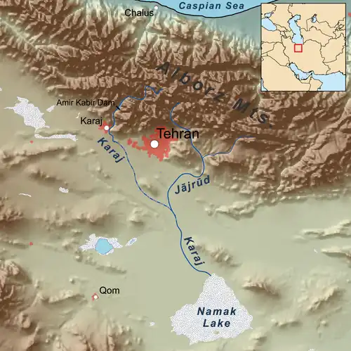 - ^ a b Hourade, Bernard (December 15, 2010). "Karaj River". iranicaonline.org. Encyclopaedia Iranica Foundation. Archived from the original on 2010-04-10. Retrieved 2022-02-04.